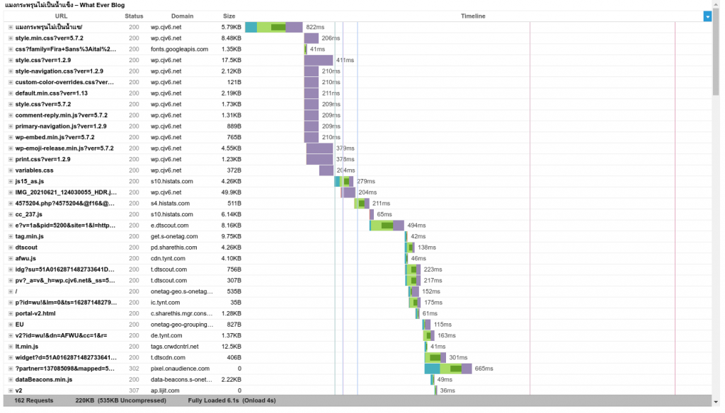 จำนวน request เท่ากับ 162 เวลาที่ใช้ในการ load เท่ากับ 6.1 วินาที