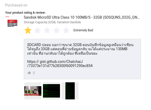 ลองไปหาดูจาก advice กับ jib ก็มีขนาด 16 หรือ 32GB up ก็เลยลองไปดูที่ lazada กับ shopee ต่อ ซึ่งก็ขนาดไม่ต่างกัน แต่ราคาถูกกว่าประมาณ 1/3 ก็เลยลองสั่งมาจาก lazada ดู สั่งมา 3 card จ่ายรวมค่าส่งไปประมาณ 150 บาท